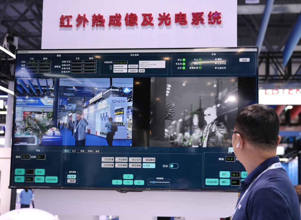 在2025長春光博會現場一位參展者正在觀看“紅外熱成像及光電系統”的展示。