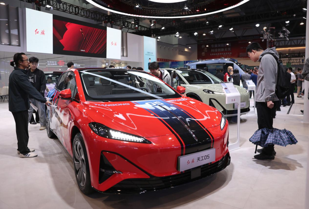 觀眾正在參觀2025長春光博會一汽紅旗展區。