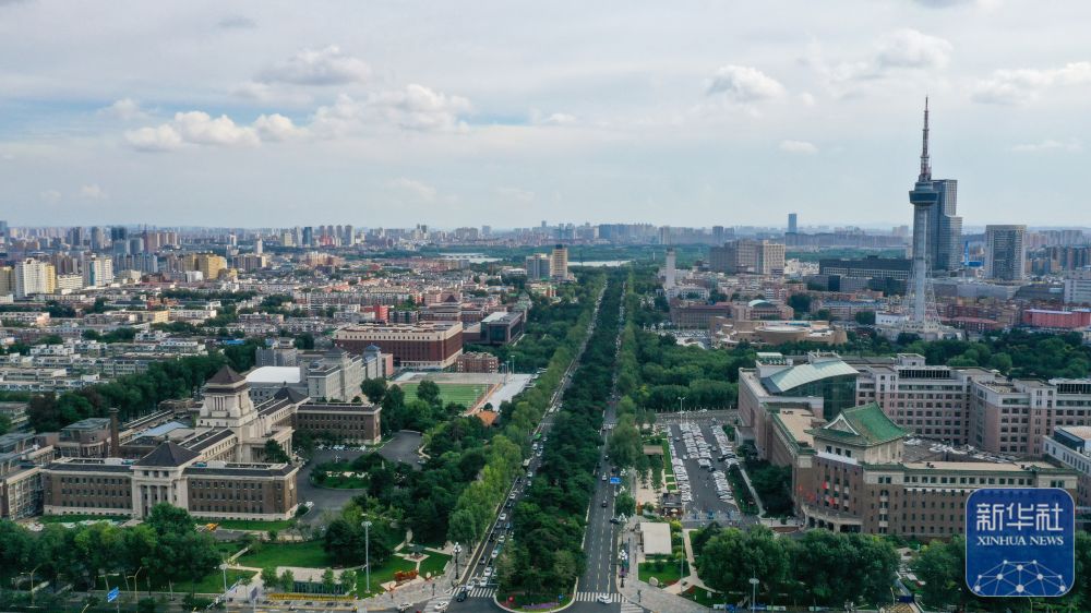 7月28日拍攝的長春新民大街(無人機全景拼接照片)。