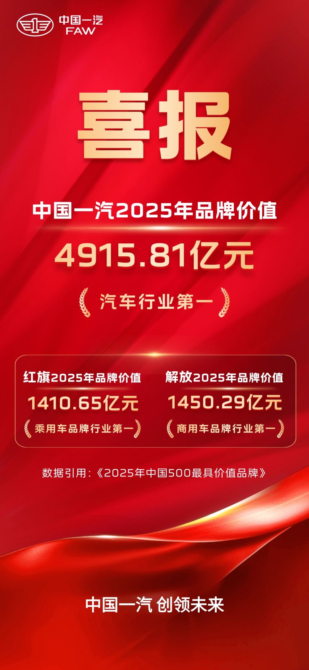 在2025年《中國500最具價值品牌》榜單中,中國一汽解放品牌以1450.29億元的品牌價值榮登商用車品牌行業榜首。這一成績的取得,體現了解放品牌長期的技術積累、產品創新和市場拓展能力,為國內市場持續領航提供了堅實支撐。