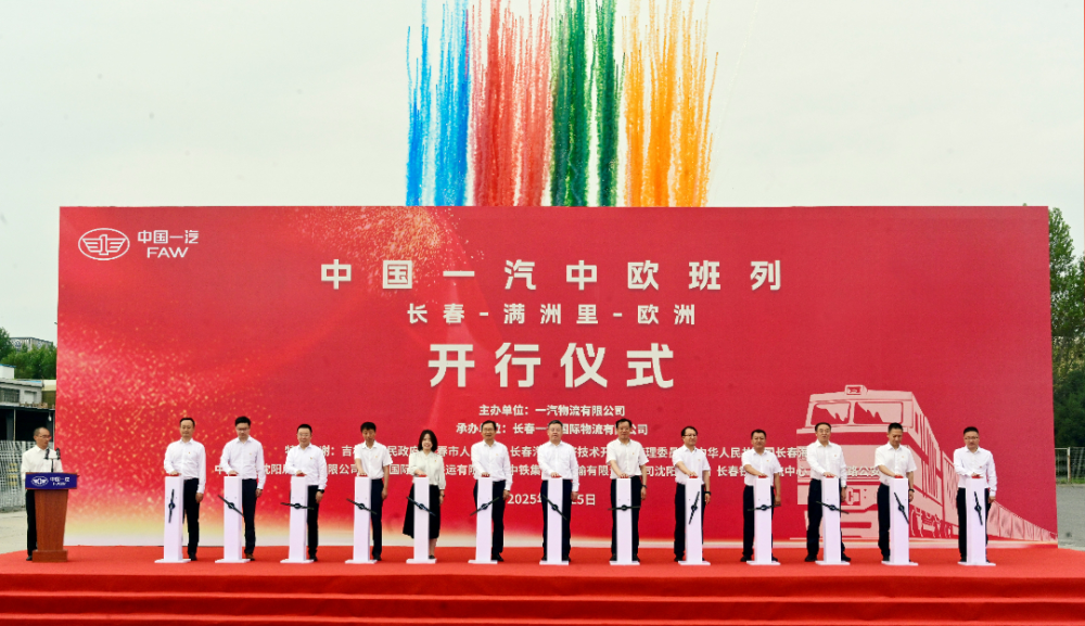 2025年8月,中國一汽中歐班列“長春-滿洲里-歐洲”成功開行,裝載紅旗、解放、奔騰等車型高端零部件產品,駛向歐洲市場,進一步拓展了國際化發展通道。