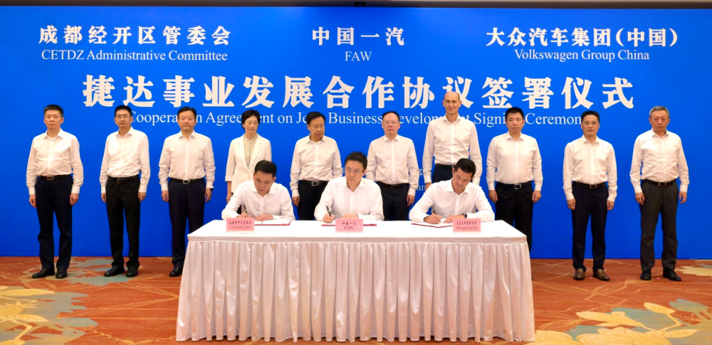 ▲2025年8月,中國一汽、大眾汽車集團(中國)、成都經開區管委會在成都簽署《捷達事業發展合作協議》,籌備成立捷達品牌新公司